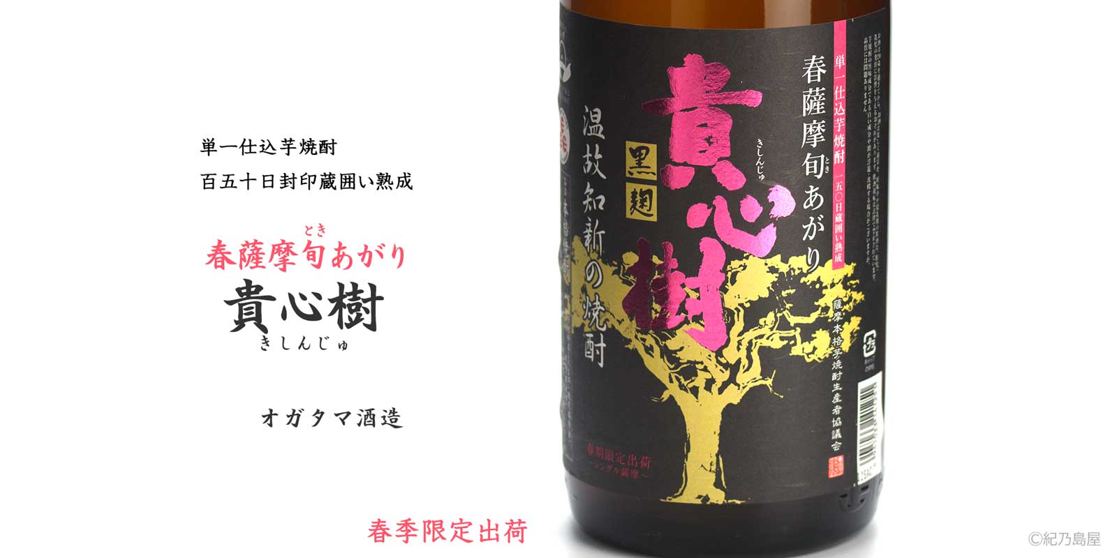 芋焼酎「春薩摩旬あがり(ときあがり) 貴心樹」は、最盛期の芋で仕込んだよりすぐれた原酒の中から150日間以上貯蔵し、手間暇かけて最高の状態に仕上げた逸品です。